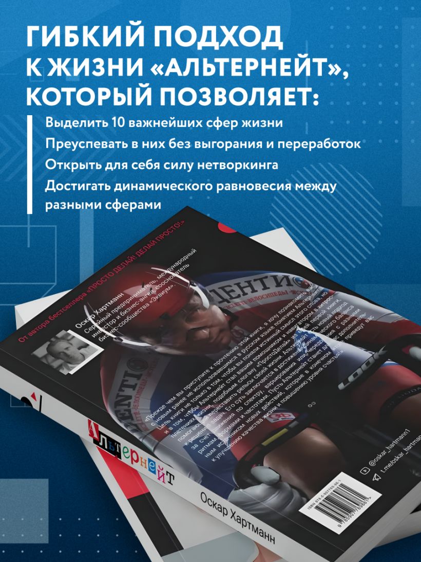 В новой книге Оскар Хартманн развивает свои идеи и предлагает концепцию Альтернейт — динамичный подход к балансу в жизни. Он помогает достигать амбициозных целей в разных сферах, оставаясь при этом счастливым человеком. Вы узнаете, как: