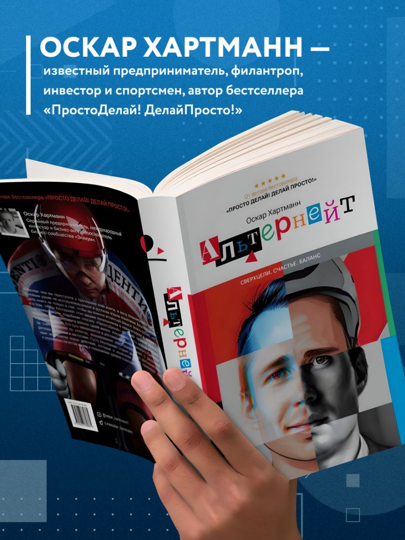 В своей новой книге «Альтернейт» Оскар Хартманн — известный предприниматель, филантроп, инвестор и спортсмен, автор бестселлера «ПростоДелай! ДелайПросто!» — рассказывает, как построить успешную жизнь и добиваться поставленных целей, оставаясь при этом счастливым человеком.
