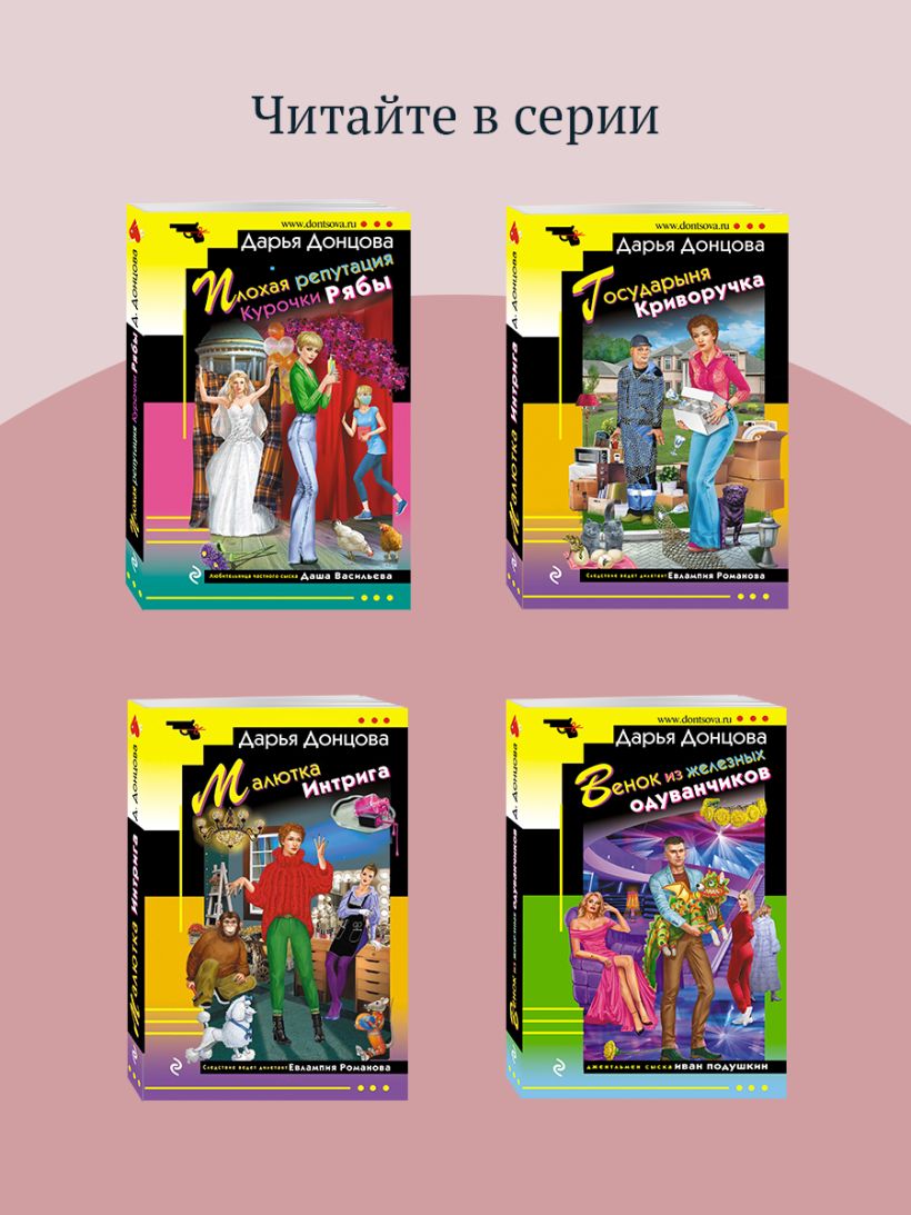 Больше всего дети любят делать то, что родители просят их не делать. Иван Подушкин думал, что его уже ничем не удивить, но судьба подкинула ребус. К нему обращается Светлана Игоревна Веселова. Капризная миллионерша уверяет, что ее дочь-паиньку подменили наглой самозванкой, которая сбежала, прихватив миллион рублей. Подушкин надеется быстро разобраться с проблемой: наверняка девушке надоело служить домработницей у своей неласковой родительницы. Но зря! Бедняга Иван еще не знает, что на самом деле он сам - главная марионетка в грандиозном спектакле, где вместо аплодисментов прозвучит выстрел из прошлого. Дарья Донцова — самый популярный и востребованный автор в нашей стране, любимица миллионов читателей. В России продано более 200 миллионов экземпляров ее книг. Ее творчество наполняет сердца и души светом, оптимизмом, радостью, уверенностью в завтрашнем дне! «Донцова невероятная работяга! Я не знаю ни одного другого писателя, который столько работал бы. Я отношусь к ней с уважением, как к образцу писательского трудолюбия. Женщины нуждаются в психологической поддержке и получают ее от Донцовой. Я и сама в свое время прочла несколько романов Донцовой. Ее читают очень разные люди. И очень занятые бизнес-леди, чтобы на время выключить голову, и домохозяйки, у которых есть перерыв 15—20 минут между отвести-забрать детей». — Галина Юзефович, литературный критик