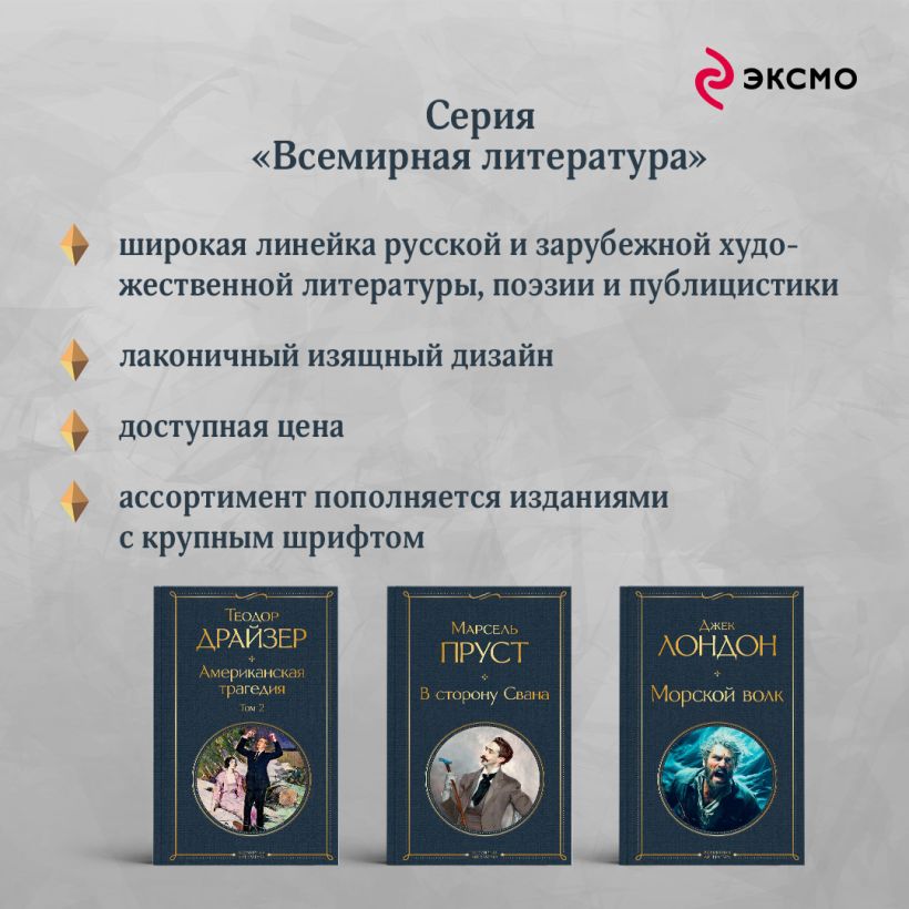 Сборник «Потусторонние истории» Эдит Уортон представляет собой изящную и мастерски составленную коллекцию из пятнадцати рассказов Эдит Уортон, в которых жанр классических историй о призраках переплетается с глубоким психологизмом и социальным подтекстом. Эти рассказы погружают читателя в атмосферу необъяснимой тревоги, мистики и напряжённого ожидания, где призраки часто становятся метафорой моральных конфликтов, подавленности и душевных терзаний. Действие происходит в мрачных особняках и отдалённых усадьбах, а главными героями чаще всего оказываются женщины, сталкивающиеся с ограничениями своего времени и собственного положения. Их внутренние страхи, боль и одиночество преобразуются в непостижимые сверхъестественные явления. Стиль Уортон характеризуется тонкой психологической проработкой персонажей, насыщенностью описаний и тщательным построением сюжета, что делает рассказы одновременно элегантными и глубоко тревожащими. Этот сборник — не просто классика ужасов, а проникновенное исследование человеческой души, скрывающейся за маской внешнего благополучия. «Потусторонние истории» — книга для тех, кто ценит не только атмосферу сверхъестественного, но и художественную силу слова, раскрывающего неизведанные глубины человеческого страха и чувства вины. Эдит Уортон — автор более двадцати романов и десяти сборников рассказов — первая женщина-писательница, удостоенная Пулитцеровской премии в 1921 году. Такие произведения Уортон, как «Обитель радости», «Итан Фром», «Эпоха невинности», «Плод дерева», вошли в «золотой фонд» американской литературы. Капсульная коллекция внутри серии «Элегантная классика»! Любовь многогранна, может вознести, а может разбить сердце. Любовь может идти рука об руку с притягательной тьмой, манящей в потусторонние миры. Поэтому в привычный макет серии мы добавили темные краски, убийственно красивые цветы, а также животных-проводников. Капсулу объединяет общая тематика мистического и картинка на корешке, внутри макет с иллюстрациями.