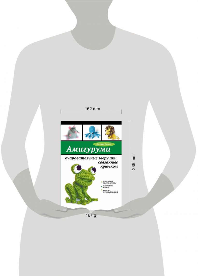 Откройте для себя амигуруми – искусство вязания крючком по спирали миниатюрных игрушек с яркими характерами и милыми мордочками: смешного жирафа с невероятно длинной шеей, мягко потягивающейся кошки, улыбчивого лягушонка, забавного осьминога и многих других. Талантливая рукодельница Светлана Слижен научит вас, как подобрать нитки и крючок для каждой игрушки, как связать объемные детали и соединить их между собой разными способами, а также вышить мордочки и лапки зверушек, придавая уникальность каждому образу.