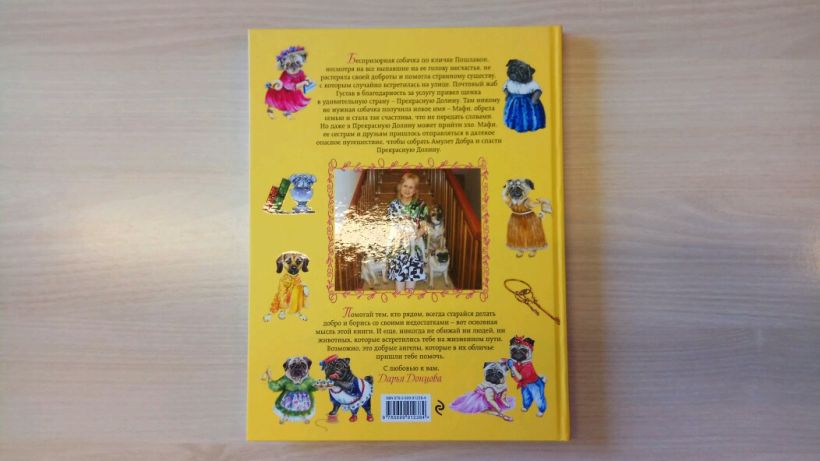 Об авторе Дарья Донцова - одна из самых популярных российских писательниц, главная оптимистка страны. И даже если вы никогда не читали ее книг, то наверняка не раз слышали это имя. Читатели уже давно полюбили книги Дарьи Аркадьевны, написанные в разных жанрах, за позитивный настрой, радостные эмоции, которые они дарят, увлекательный сюжет и обаятельных, запоминающихся героев. На счету Дарьи Донцовой более 180 романов, суммарный тираж которых превысил 137 миллионов экземпляров. Жанр Сказочная повесть О книге «Амулет добра» открывает новую авторскую серию книг для детей «Сказки Прекрасной Долины». Это история бездомной собаки по кличке Пошлавон, которая благодаря новому другу попадает в волшебный мир Прекрасной Долины, где она обретает не только новых друзей, но и семью. Но на пути к счастью им предстоит преодолеть немало трудностей. Юные читатели вместе со сказочными персонажами учатся дружить, любить, сопереживать, помогать. Добрый и светлый юмор, присутствующий во всех книгах Дарьи Донцовой, заставит от души смеяться над забавными героями не только ребят, но и их родителей. Особенности Добрая, искренняя, позитивная сказочная повесть способна развеселить самого хмурого, заставить улыбаться самого сердитого, осчастливить самого грустного. Она прекрасно подходит для совместного чтения родителей с детьми. Легкое, по-хорошему детское отношение к жизни Дарьи Донцовой делает повесть такой понятной и близкой ребятам. А красочные иллюстрации художницы Юлии Семитко откроют для всех удивительный и волшебный мир Прекрасной Долины.