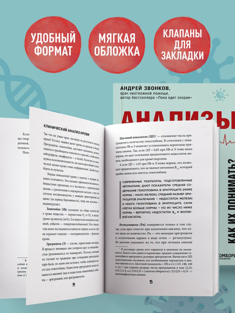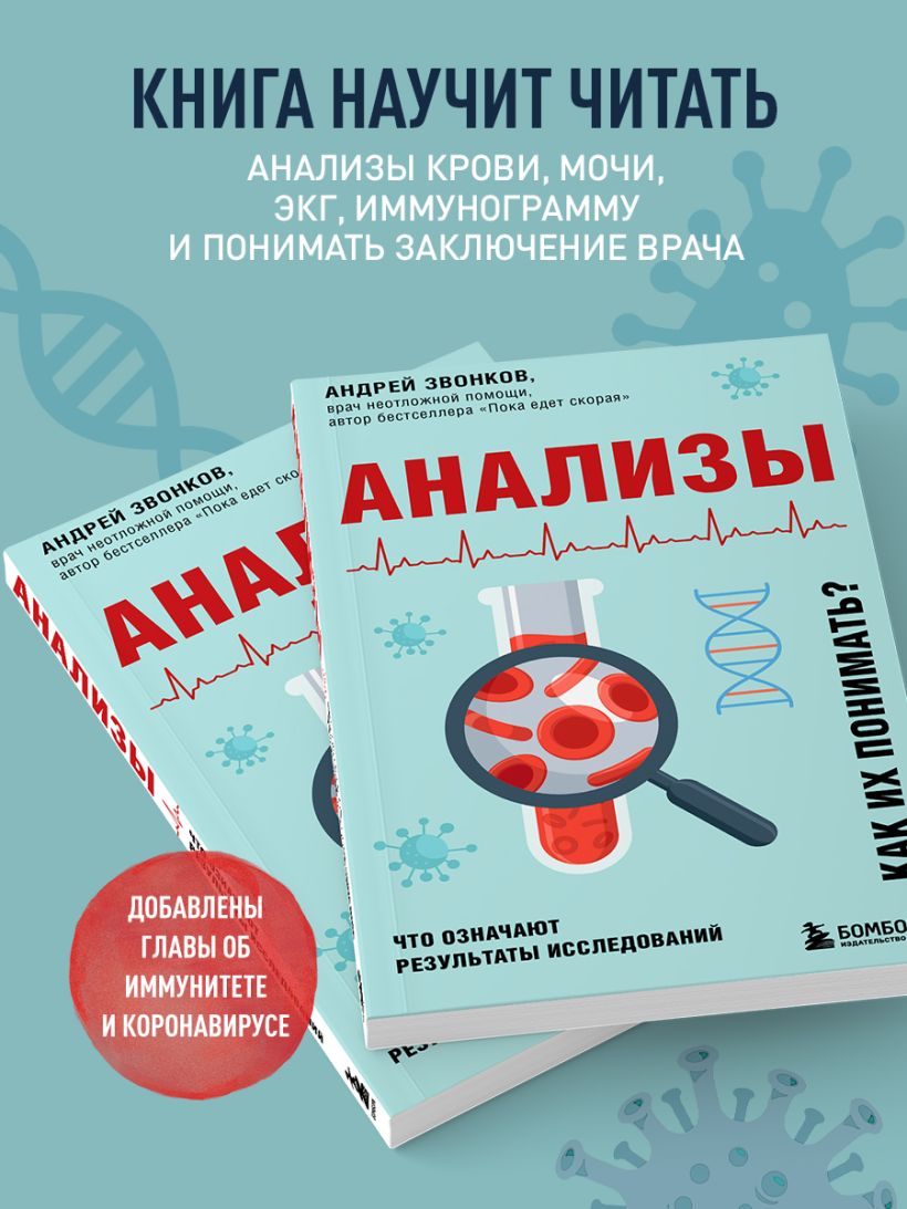 Андрей Звонков, врач неотложной помощи с большим стажем и автор бестселлера «Пока едет скорая. Рассказы, которые могут спасти вашу жизнь», помогает расшифровать биохимический и клинический анализы крови, анализ мочи, анализ на гормоны внутренней секреции и на онкомаркеры. В этом обновленном издании книги он рассказывает, что такое анализ-иммунограмма, как иммунитет реагирует на вакцинацию, чем отличаются антитела и что означает их отсутствие или наличие.
