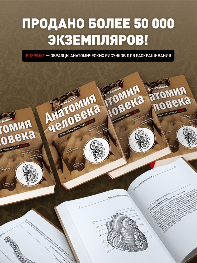 «Анатомия человека: полный компактный атлас» — надежный справочник, по которому легко изучать анатомию: в книге наглядно и с объяснениями показаны все системы и органы человека. Есть удобная навигация по главам на обрезе и специальный словарь-указатель с комментариями и ссылками на соответствующие анатомические структуры. Терминология, используемая в атласе, содержит и последнюю версию Nomina Anatomika, и предыдущие, принятые в анатомической практике названия. Кроме того, в издании впервые даны пробные страницы для закрашивания (см. комментарии на обороте обложки), которые упростят изучение анатомии.