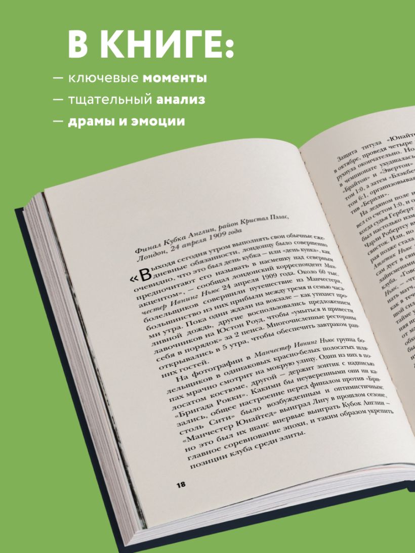 Отсюда начинается волнительное путешествие от первого выигранного Кубка Англии, после оглушительной победы над «Бристоль Сити» в 1909 году, и заканчивая победой в Кубке 2016 года, ознаменованном последней игрой Луи ван Галы. Проведя качественную и глубокую оценку самих матчей, Уилсон определяет и указывает на ключевые моменты клуба, которые сделали его одной из самых блистательных команд нашего времени.
