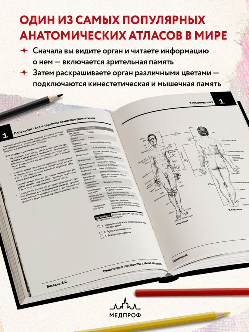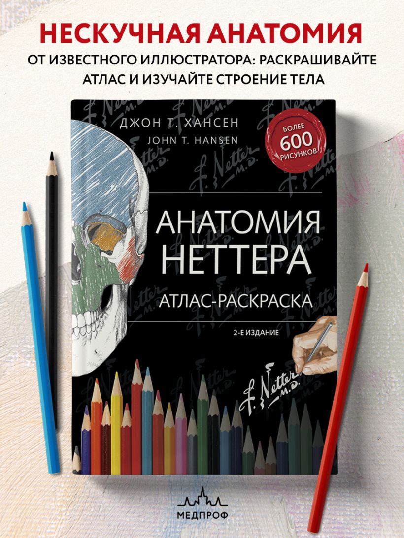 Говоря об изучении анатомии все обычно представляют многостраничные тома со множеством мелкого текста, начав читать которые можно уснуть через пять минут. Но это не так! Откройте для себя удивительны мир строения человеческого тела при помощи уникального атласа-раскраски Анатомия Неттера! Возьмите цветные карандаши и: