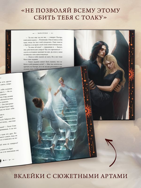 Невероятное подарочное издание знаменитой «Ангельской саги» культовой немецкой писательницы Мары Вульф! Силуэтные портреты Мун и Люцифера, медная фольга на суперобложке и под ней, запечатанный узором обрез — все для того, чтобы эстетичное оформление радовало ваш взгляд.