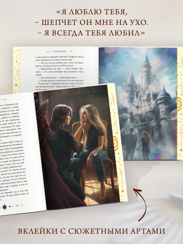 Невероятное подарочное издание знаменитой «Ангельской саги» культовой немецкой писательницы Мары Вульф! Силуэтный портрет главной героини Мун, золотая фольга на суперобложке и под ней, запечатанный узором обрез — все для того, чтобы эстетичное оформление радовало ваш взгляд.