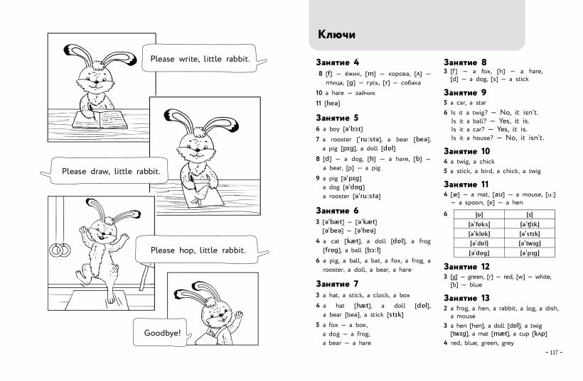 Рабочая тетрадь - это как раз практика, много практики к пособию "Английский для малышей". Материал повторяется по урокам. Тут можно и обвести слова и буквы, и подобрать их к картинкам, и вспомнить транскрипцию.