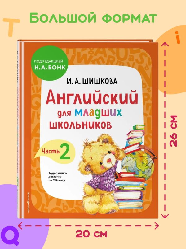 Первая часть курса «Английский для младших школьников» знакомит детей с буквами и звуками английского языка, а вторая учит уверенно строить простые предложения, рассказывать о себе и своих родных, разбираться в простых грамматических конструкциях. Авторская методика Ирины Шишковой помогает детям легко осваивать английский язык, постепенно переходя от простого к сложному. Аудиозапись доступна по QR-коду. Она поможет детям поставить отличное произношение и научит понимать на слух англоязычную речь. Книга станет бесценным дополнением к любому учебнику, по которому занимается ваш школьник. Каждый урок — это маленький шаг к большим успехам в английском языке.