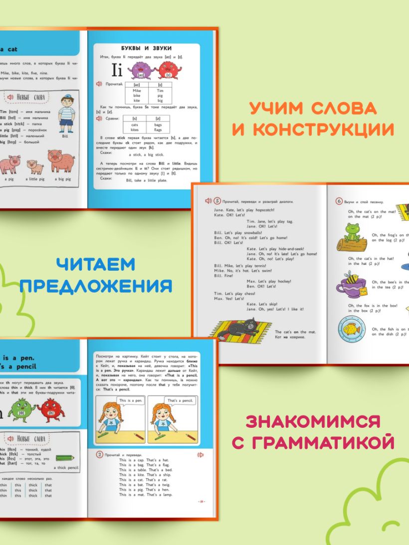 Книга, которую настоятельно рекомендуют преподаватели, репетиторы и те, кто занимается английским с детьми, теперь представлена в новом мини-формате. Размер книги уменьшился, но вся информация осталась в полном объёме! Этот учебник — реальный способ не только заложить прочный фундамент знаний английского языка, но и освоить важную тему, на которую в школе обычно не хватает времени, а именно — научиться читать по-английски. И даже транскрипция окажется не страшной, а понятной и очень полезной! Основы грамматики объясняются именно для детей — несложно, коротко, понятным языком. Множество примеров и упражнений помогут запомнить новые слова и конструкции, эффективно их отработать и научиться правильно применять. Забавные упражнения и понятные объяснения теперь сопровождаются яркими современными иллюстрациями, которые непременно понравятся детям. Книга уменьшенного формата легче, поэтому её удобно брать с собой в дорогу, да и в портфеле она займёт меньше места!