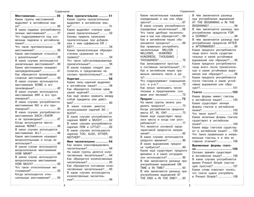 Все темы школьного курса английского языка, представленные в форме «вопрос — ответ», делают настоящий справочник хорошей альтернативой традиционным учебным пособиям. Ёмкие ответы на 200 вопросов в доступной форме расскажут самое необходимое. Структура книги не даст устать от чтения, а интонация диалога снимет напряжённость в ходе обучения.