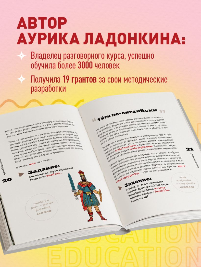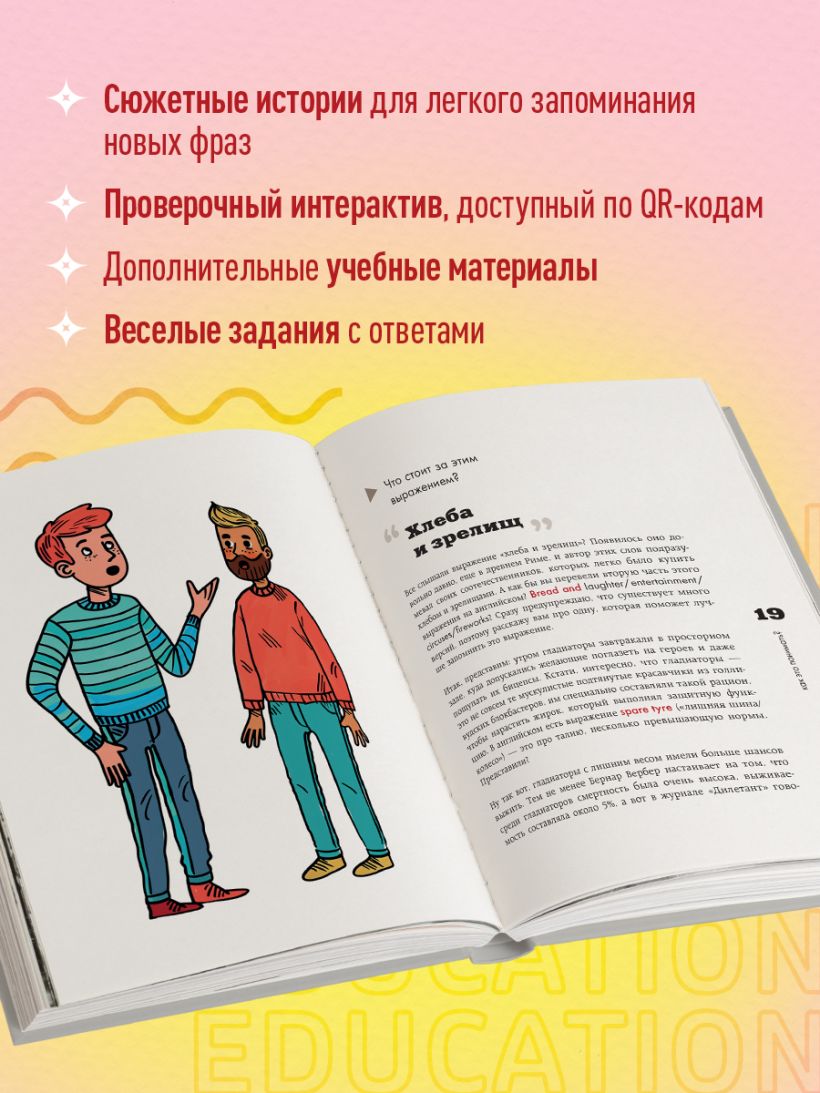 Издание включает захватывающие лексические истории слов и выражений: откуда возникла фраза «Хлеба и зрелищ», что значит «уйти по-английски», что общего у пандемии и Пандоры и почему хоккеисты сбрасывают обезьяну с плеча. Вторая часть посвящена непростым грамматическим аспектам, связанным с употреблением времен, артиклей, предлогов и вопросно-ответных форм. Каждая история сопровождается практическими заданиями с ответами, а также вспомогательными и проверочными интерактивными материалами, которые читатели найдут по QR-кодам.