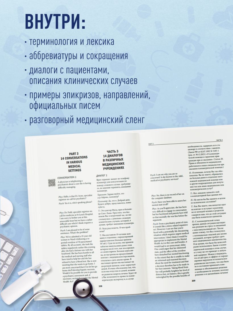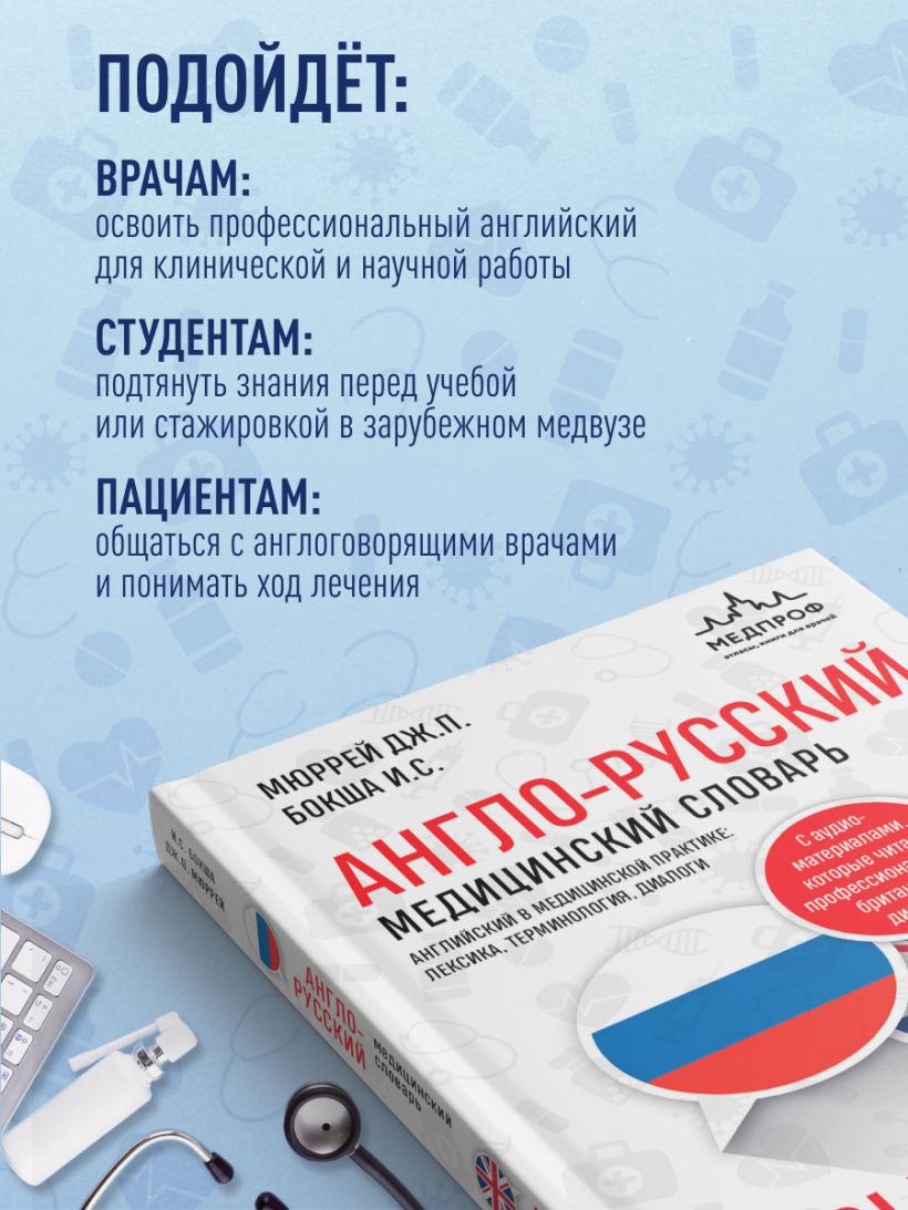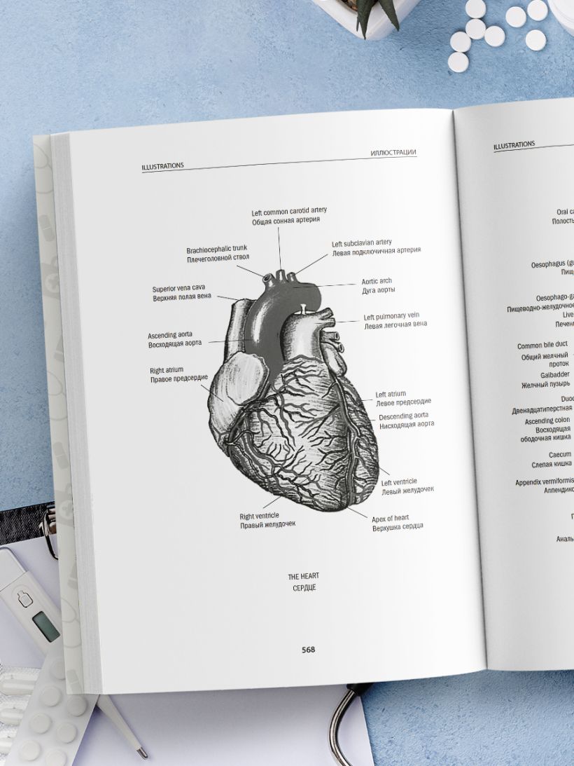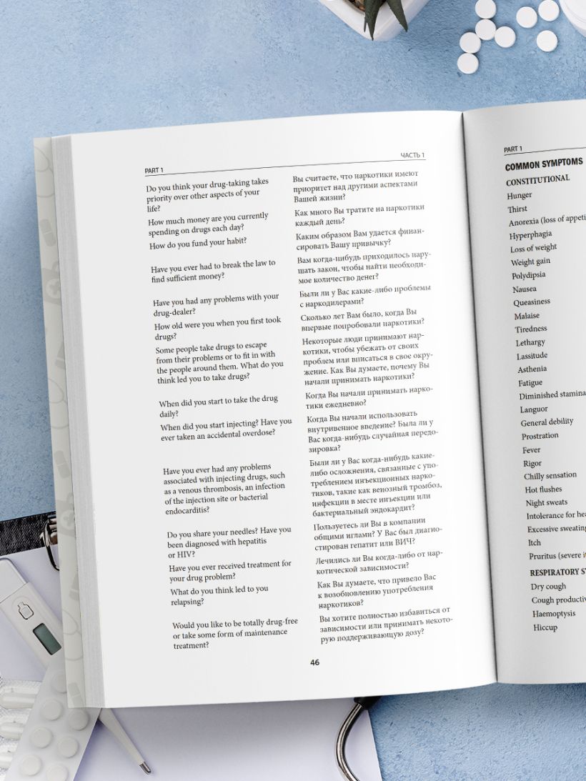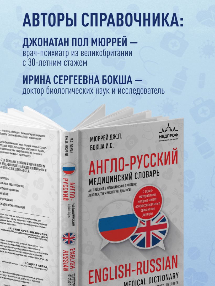 Англо-русский справочник, написанный в соавторстве британского врача Дж. П. Мюррея и доктора биологических наук И. Бокша, включает в себя удобный словарь физиологических терминов, разговорник, который максимально приближен к реальным ситуациям, а также наглядные схемы для изучения анатомии.