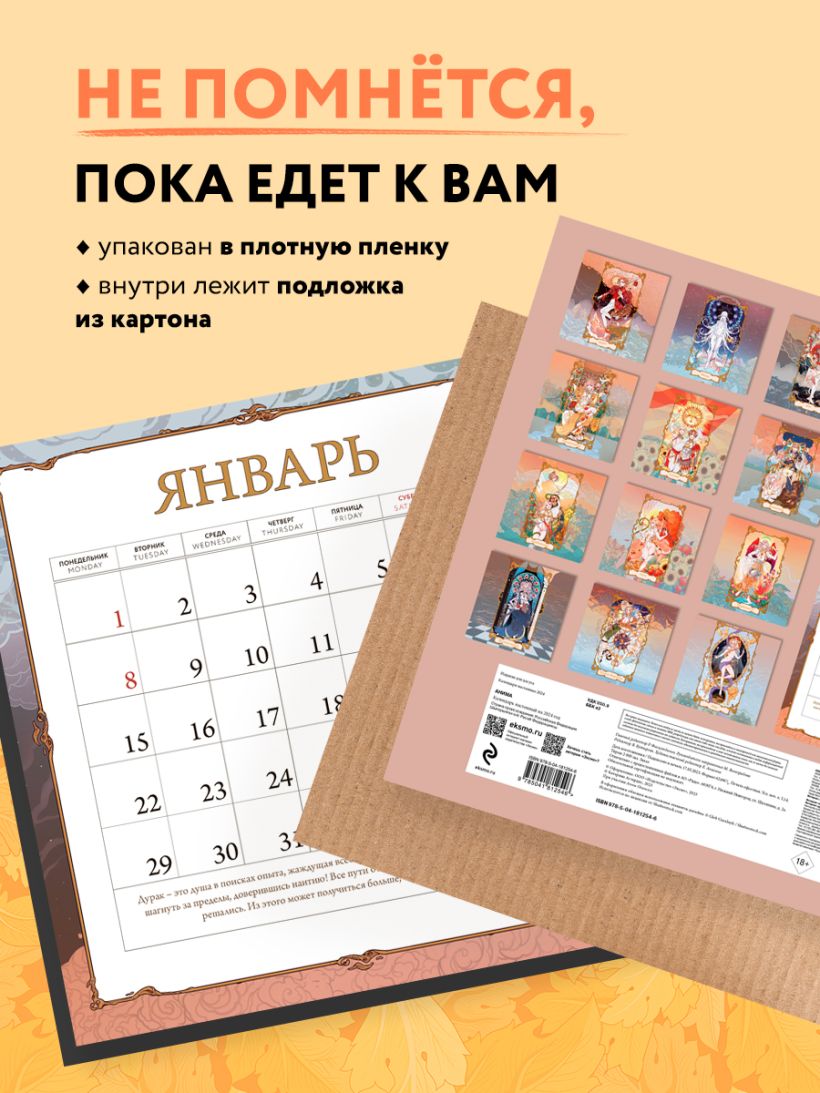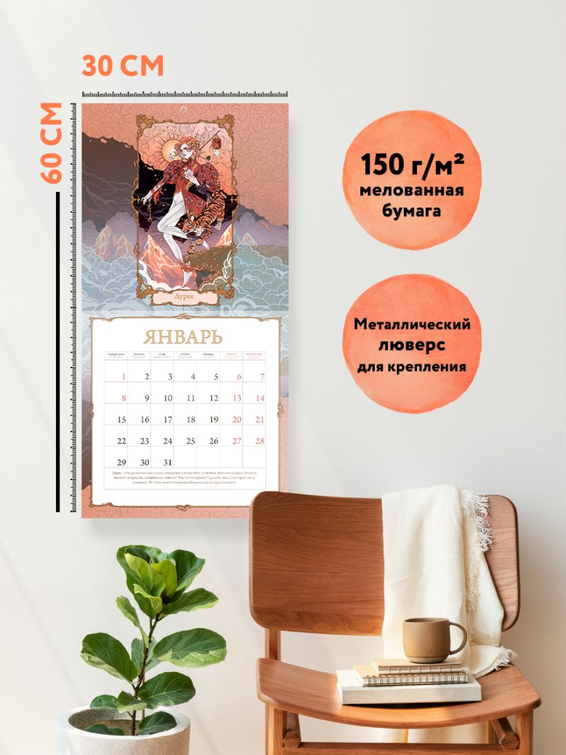 Высокое качество полиграфического исполнения прекрасно дополняет сложные, полные символических деталей авторские иллюстрации Катерины Астердис. Этот календарь порадует всех любителей Таро и ценителей прекрасного.