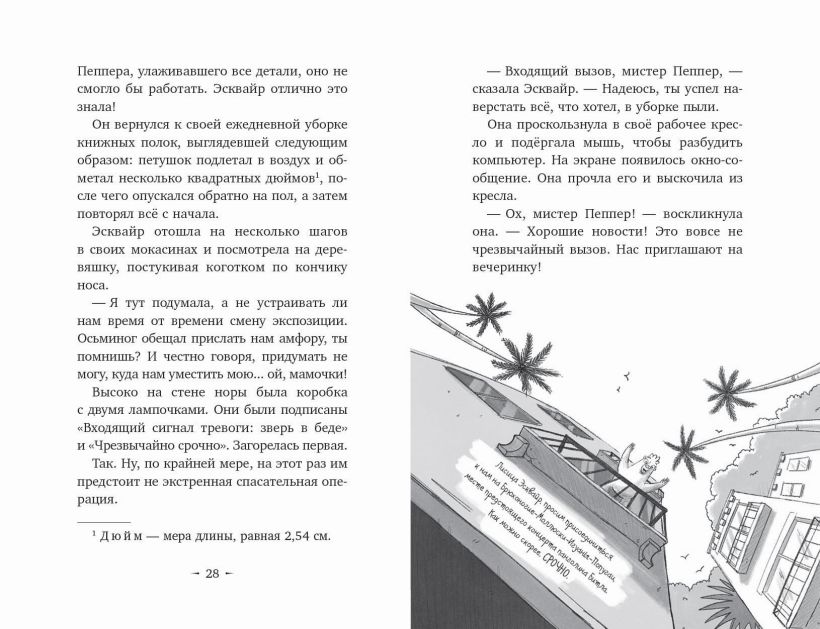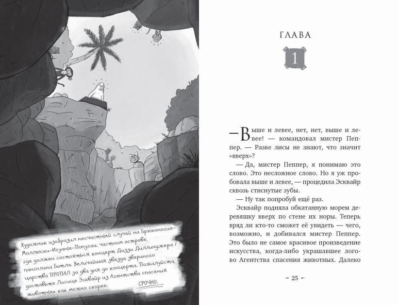 Лисица Эсквайр — умная и дальновидная охотница (за приключениями). Мистер Пеппер — её лучший друг и соратник. А вместе они — Агентство спасения животных! Миссии у них самые невероятные. Сейчас, например, они должны найти супер-популярного певца-панголина (что ещё за зверь, спрашивается), пропавшего накануне мега-концерта. Времени почти нет, на острове стоит тропическая жара (попробуйте побегать по ней, когда у вас густой пушистый мех) и никто ничего не знает. Но не зря лисица Эсквайр и мистер Пеппер считаются суперпрофессионалами. Они и не с таким справлялись (особенно если в награду обещают суперкоктейли).