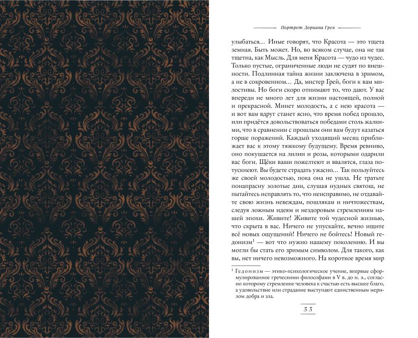 Под стильной обложкой, отсылающей нас к японской манге, размещено 8 цветных полосных иллюстраций с комиксовыми элементами. Современный художник Valentaine сохранила мрачную цветовую палитру, чтобы подчеркнуть нравственное затмение героя, его путь в обратную сторону от светлых чувств и удовольствий. Мастерское сочетание фреймов и сюжетов позволило передать двуличность героя и подчеркнуть контраст сохранённой молодости и растленной души.