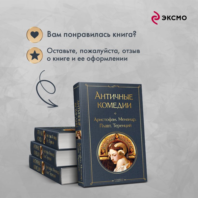 В сборнике собраны наиболее значимые комедии, которые повлияли на творчество Уильяма Шекспира, Жана-Батиста Мольера, Антона Павловича Чехова и других служителей лиры. Именно эти пьесы греческих и римских комедиографов входят в программу филологических и театральных вузов: Аристофан «Облака», «Лягушки», «Лисистрата», Менандр «Брюзга», Теренций «Свекровь», Плавт «Псеволд», «Два Менехма».