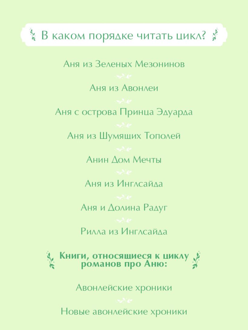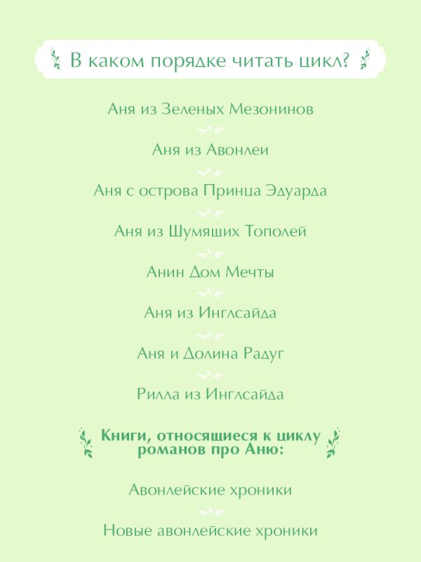 Романы об Ане Ширли — это классическая история взросления со взлётами и падениями, печалями и радостями. В 2017 году вышел очень душевный сериал «Энн», снятый по циклу романов об Ане.