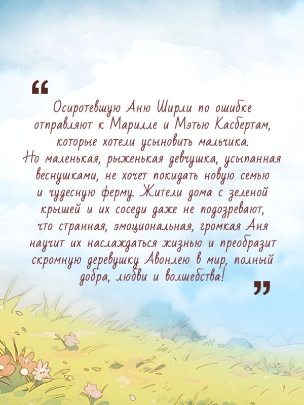 Жизнеутверждающий и дающий ценные уроки путь взросления Ани подарит вам улыбку на губах и покажет, что книги способны согревать.