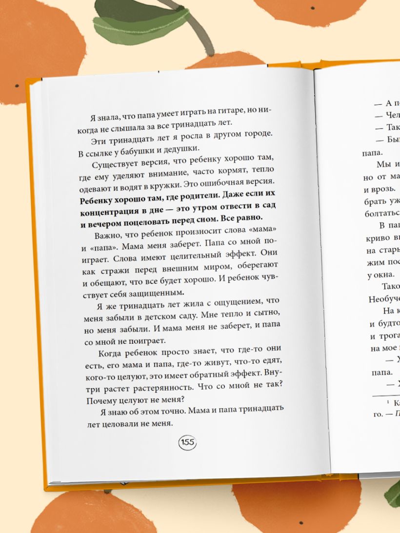 «Отношения матери и дочери — для меня тема непростая. Героине этой книги, Ольге, удалось простить свою маму. Наши истории очень похожи, эта книга помогла мне посмотреть на ситуацию с другой стороны и понять, что я не одинока». — Жанна Эппле, актриса театра и кино, телеведущая