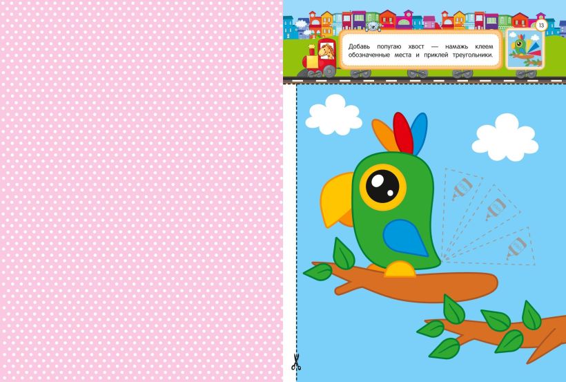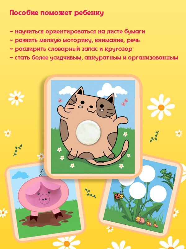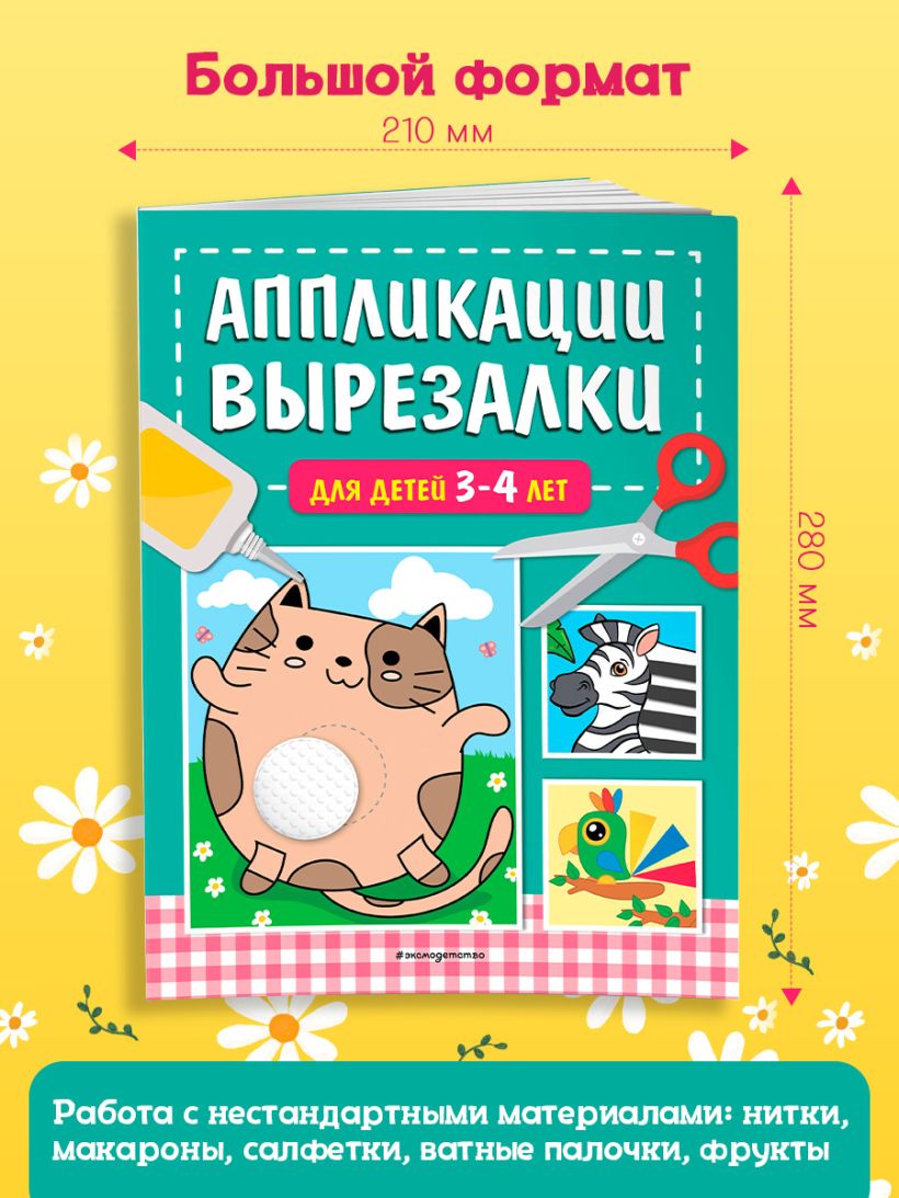 Аппликация-вырезалка поможет ребёнку развить творческие способности и станет хорошей альтернативой гаджетам. Благодаря интересным сюжетам и постепенно усложняющимся заданиям ребёнок разовьёт мелкую моторику, логическое и пространственное мышление, фантазию, внимание, воображение, подготовит руку к письму, расширит словарный запас и кругозор. Кроме того, занимаясь, малыш научится пользоваться ножницами и клеем. Все эти навыки помогут малышу почувствовать уверенность в своих силах, ведь ситуация успеха очень важна в обучении ребёнка. Пособие содержит заготовки для 20 творческих занятий. С помощью готовых шаблонов можно провести с малышом увлекательные занятия по классической аппликации, а также с нестандартными материалами (нитки, макароны, салфетки, ватные палочки, фрукты). Каждый шаблон содержит основу для поделки, текст задания для ребёнка, инструкцию для взрослых (что понадобится, как выполнять, на что обратить внимание малыша), а также пример выполненного задания. В конце книги ребёнка ожидает сюрприз — диплом за старание и выполнение всех заданий.