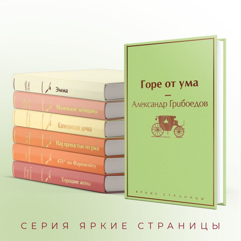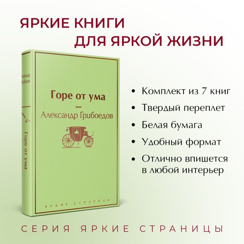 В комплект входят следующие книги серии: "Горе от ума (с иллюстрациями)", "Эмма", "Маленькие женщины", "Капитанская дочка ( с иллюстрациями)", "Над пропастью во ржи", "451' по Фаренгейту" и "Хорошие жены".
