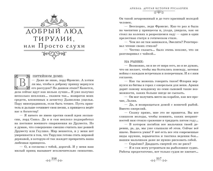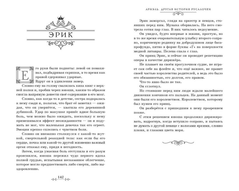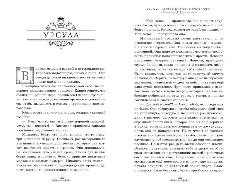 Книга поддерживает актуальный сейчас тренд — новый взгляд на известные истории, поиск скрытых смыслов и причин, по которым произошли знакомые каждому события. А ещё она оформлена потрясающей новой иллюстрацией, на которой встречаются две Ариэль — юная и наивная русалочка и грозная морская царица.