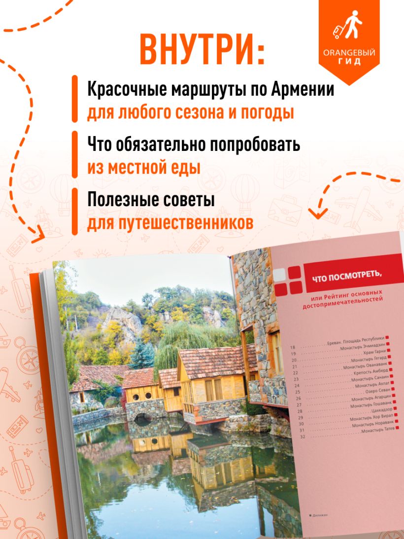 В нем содержится актуальная и полезная информация о главных городах страны, различные маршруты на любой вкус, подсказки, что делать, если идет дождь, или где искать лучшие смотровые площадки, а также множество полезных авторских советов. Посетите озеро Севан, отправьтесь к подножью Арарата к монастырю Хор Вирап или исследуйте город Гюмри — выбор только за вами!