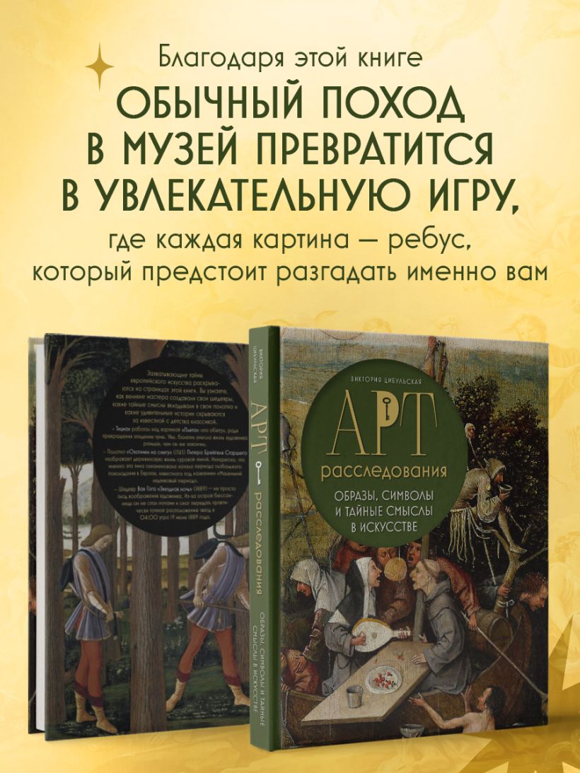 В этой книге популярный арт-блогер Виктория Цибульская подробно расскажет о загадках картин, украшающих лучшие музеи мира, от лондонской галереи Тейт до музея Прадо в Испании. Вы обнаружите неочевидные детали и скрытые символы, в свете которых хорошо знакомые картины обретают новые, глубинные смыслы, приоткрывают личные тайны своих творцов: Тициана, Караваджо, Рубенса, Веласкеса, Ван Гога, Моне и других великих мастеров живописи. Благодаря этой книге обычный поход в музей превратится в увлекательную игру, где каждая картина — ребус, который предстоит разгадать именно вам.