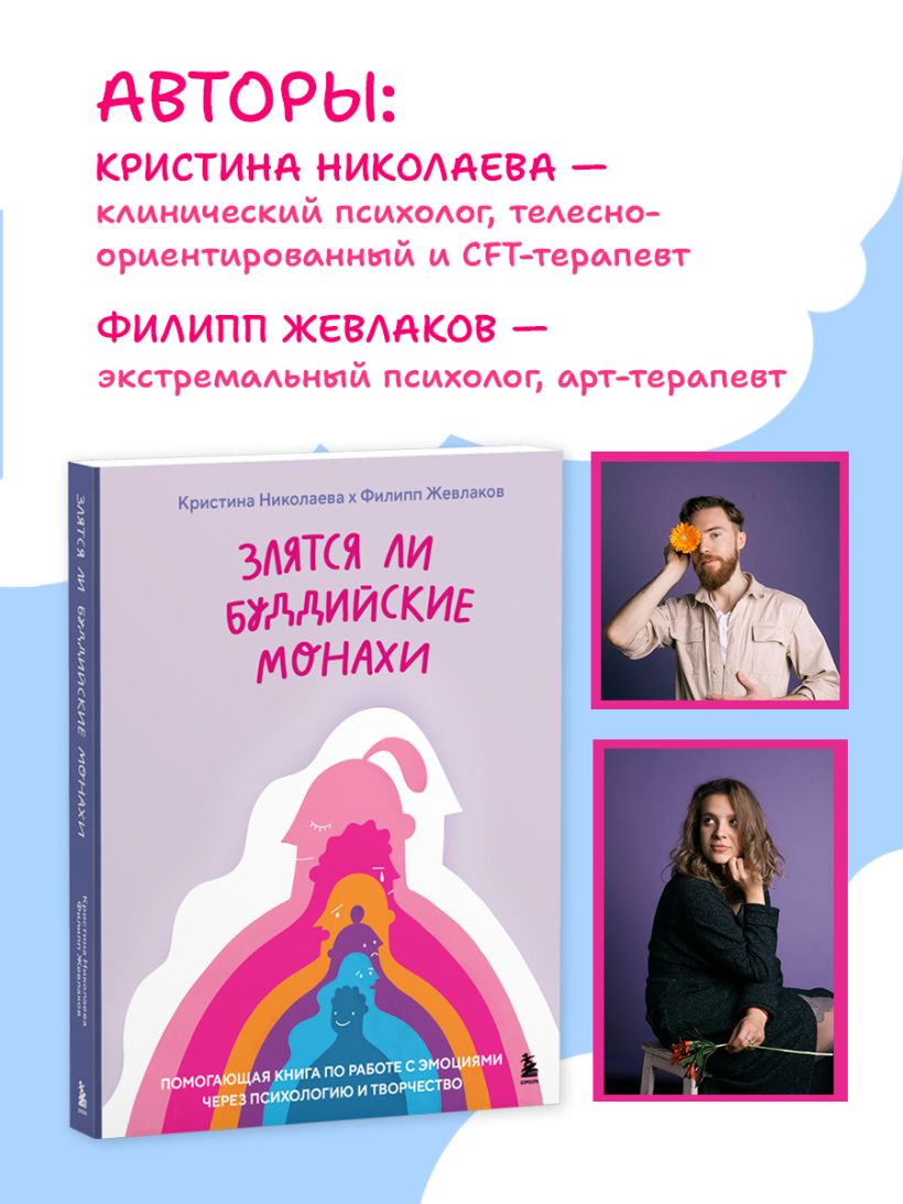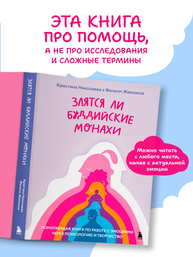 «Злятся ли буддийские монахи» — это помогающая книга, которая расскажет, как справляться со своими эмоциями и чувствами, почему важно слушать свое тело и желания и как стать своим лучшим другом. Авторы книги, практикующие психологи Кристина Николаева и Филипп Жевлаков, простыми словами объяснят, как работать с грустью, тревогой, радостью и другими эмоциями, какие инструменты могут в этом помочь, и поделятся своим личным опытом.