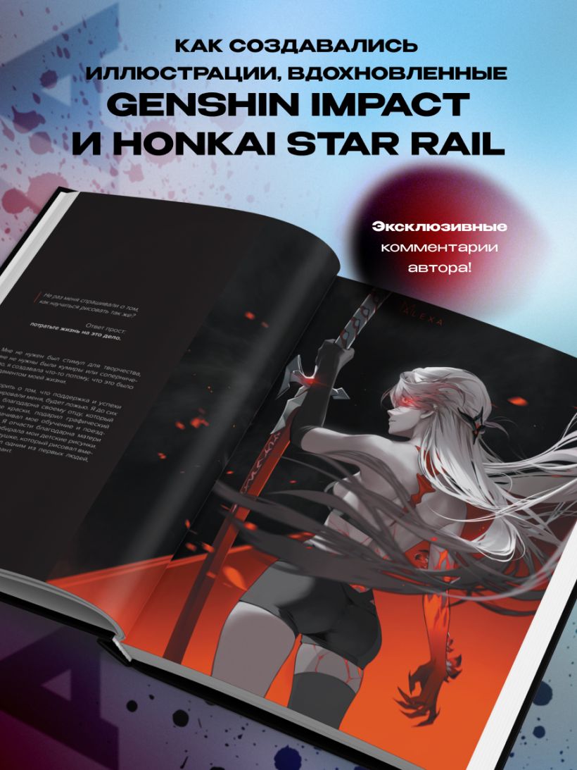 Перед вами авторский артбук российской художницы ALEXA, которая известна своими ослепительными фанартами — иллюстрациями женских персонажей по мотивам таких вселенных, как: Genshin Impact, Honkai Star Rail, Zenless Zone Zero и многим другим. Властные, сильные, красивые и умные женщины, которые побуждают падать ниц, ожидают читателя внутри.