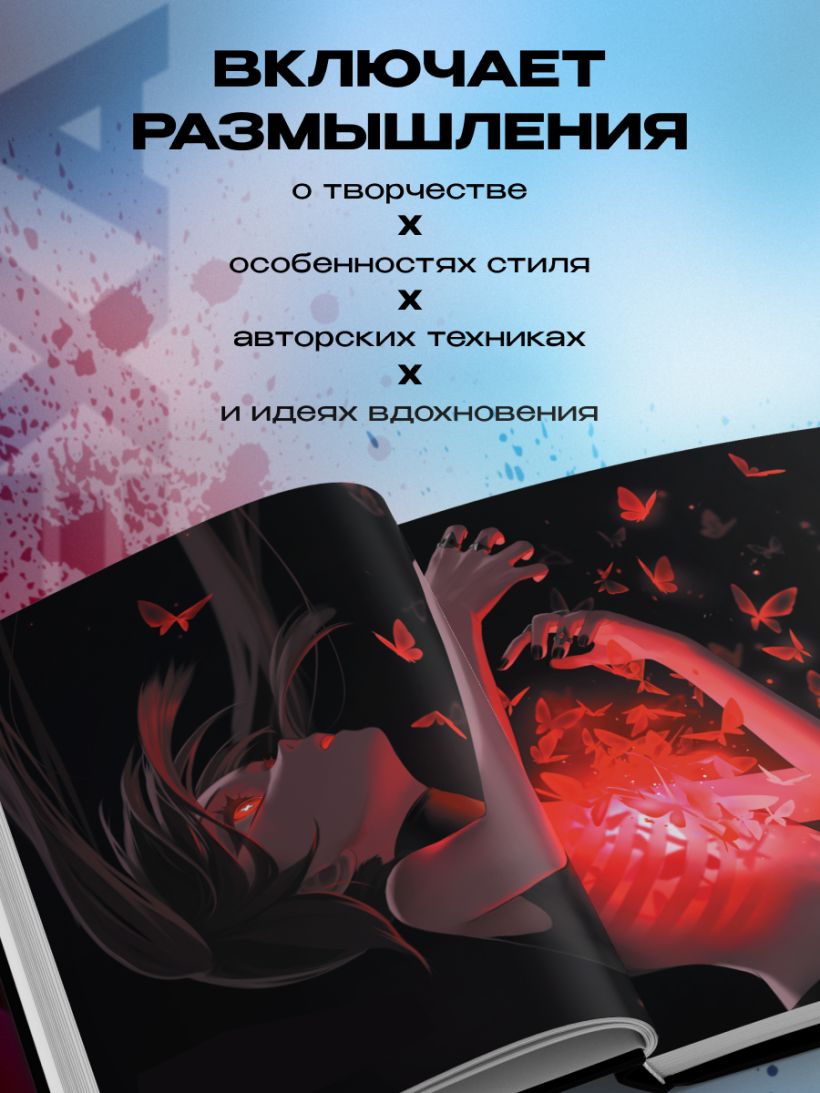 На страницах артбука собраны лучшие работы в период с 2022 по 2024 год. Все иллюстрации сопровождаются небольшим рассказом художницы о себе и своем творчестве, где она поведает об особенностях стиля, авторских техниках, идеях вдохновения, стоящими за созданием работ, и даже пошагово разберет несколько из них.