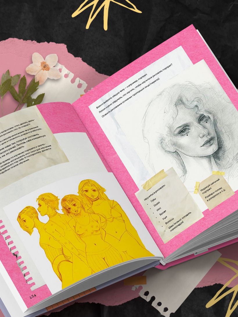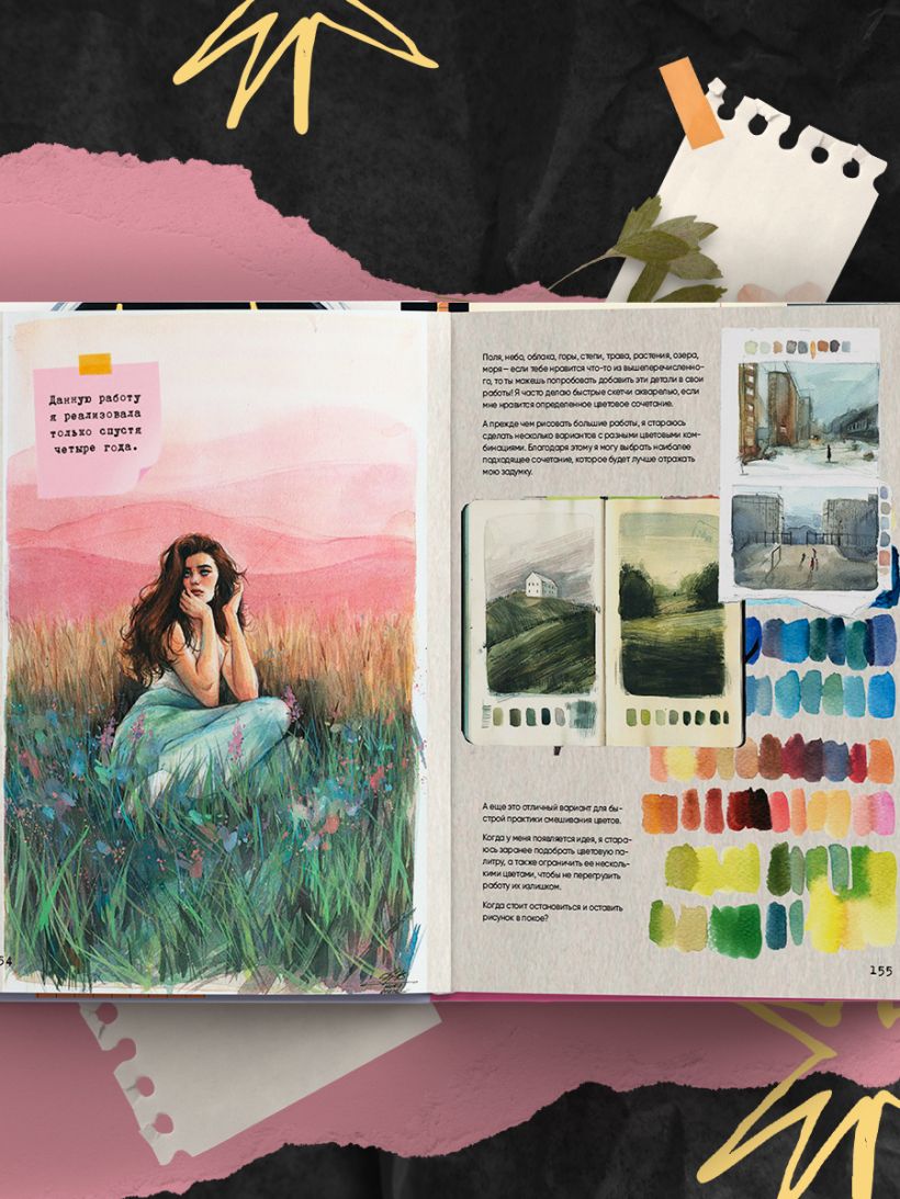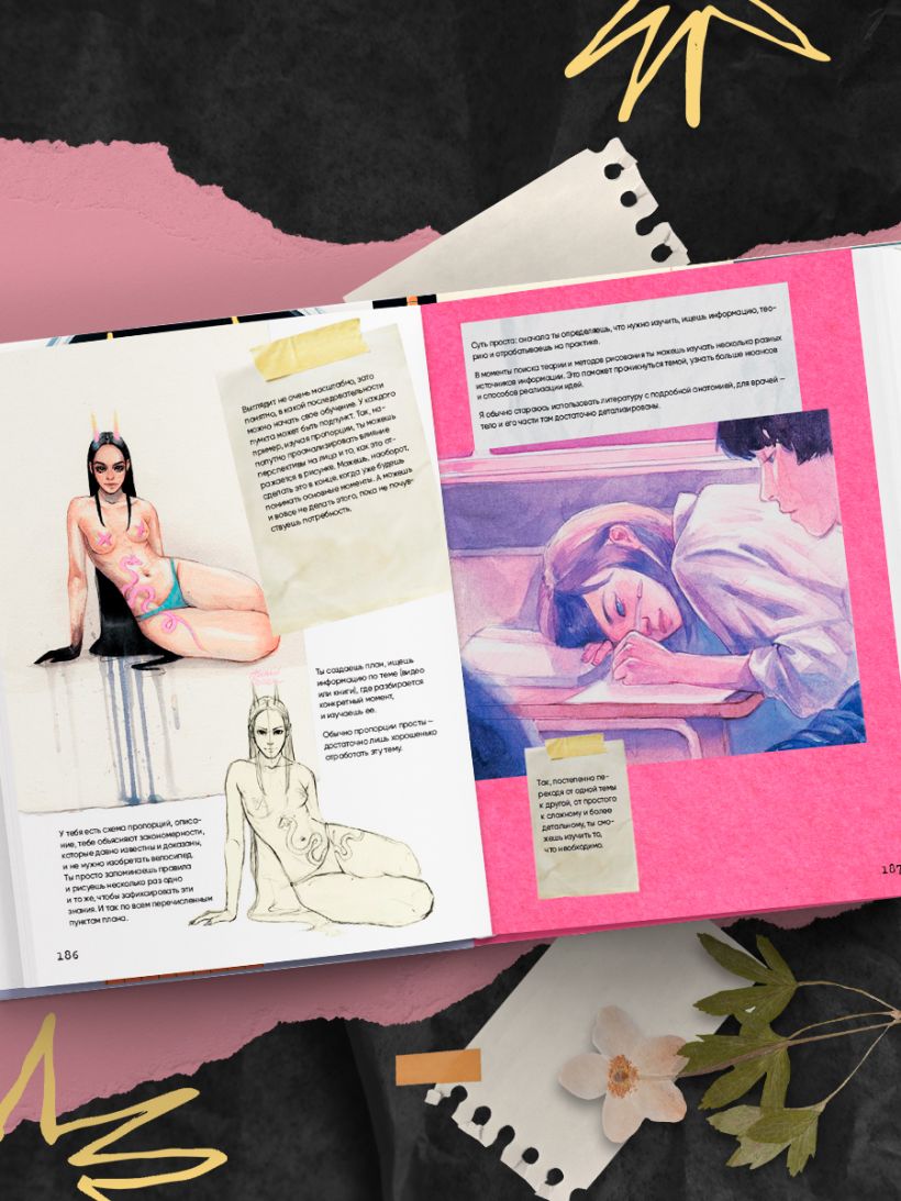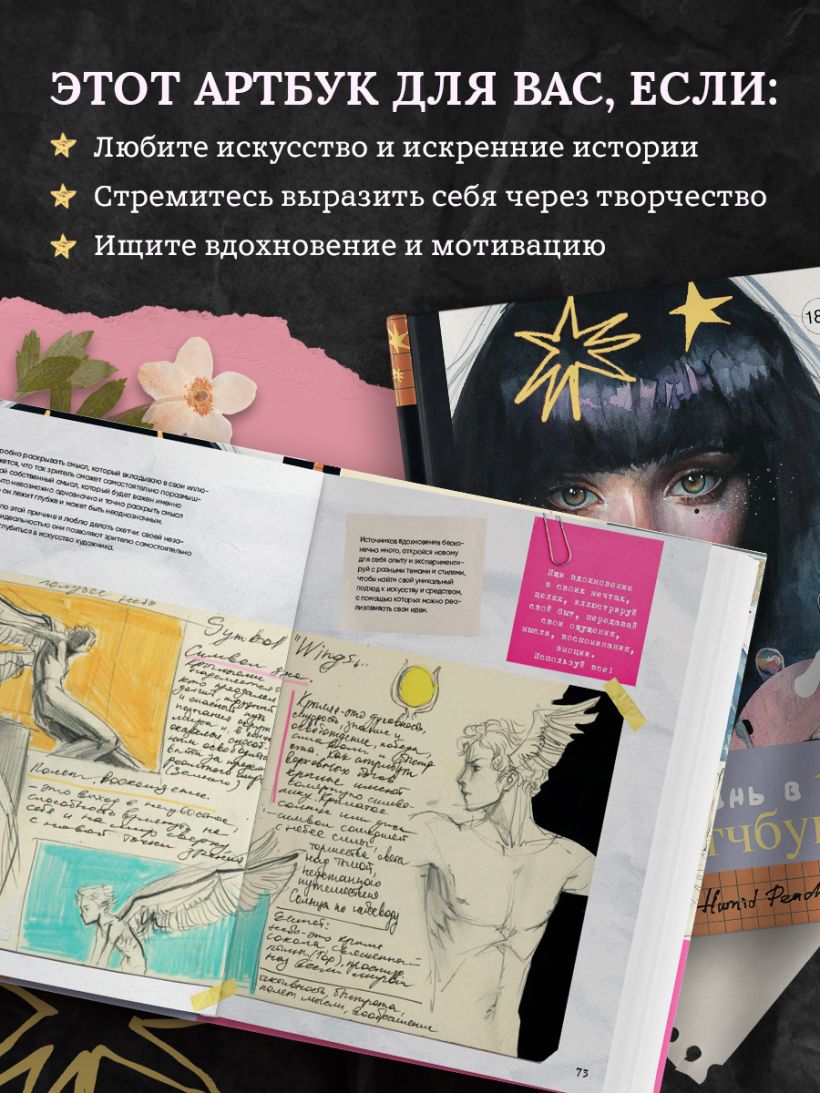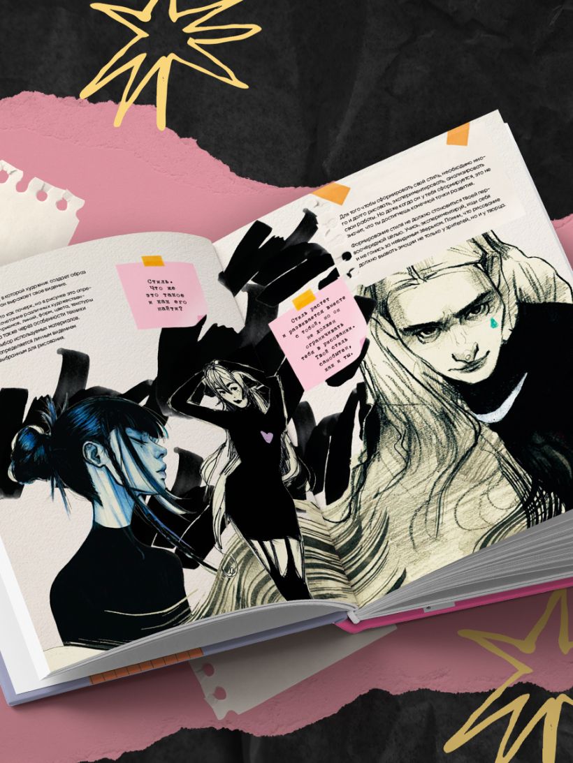 Больше, чем сборник иллюстраций, скорее личная история художницы. Под одной обложкой собрано более 300 работ, включая живые скетчи, наброски, полноценные иллюстрации и личные заметки о творчестве, поиске себя и страхах, которые пришлось преодолеть.