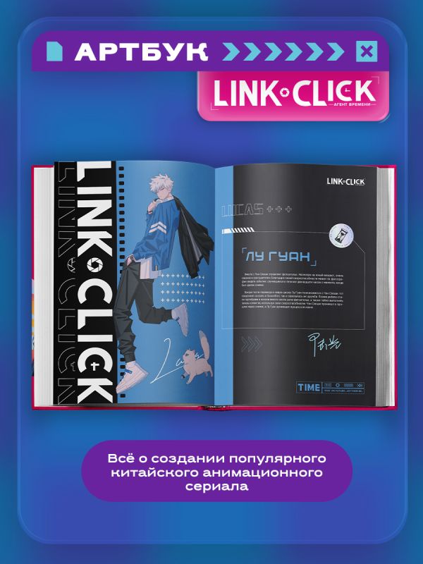 Узнайте всё о создании любимого сериала вместе с артбуком «Link Click. Агент времени. Мгновения». Здесь вы найдёте концепты персонажей и локаций с примечаниями создателей, коллекцию официальных артов, тексты песен, раскадровки опенинга и эндинга, интервью с режиссёром Ли Хаолином, а также скетчи и комментарии его команды.