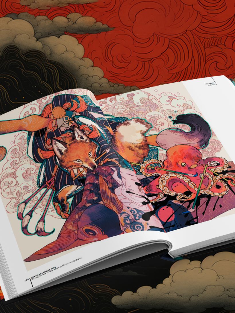 В этом артбуке собраны работы восьми художников, исследующих тёмную сторону японского фольклора. Вас ждут иллюстрации духов, скользящих в окрестностях забытых храмов, богов, скрывающихся в тенях прекрасных лесов, монстров, живущих в закоулках современных городов. Каждая страница — как приоткрытая дверь в новое измерение, где за любым поворотом может скрываться нечто одновременно пугающее и прекрасное.
