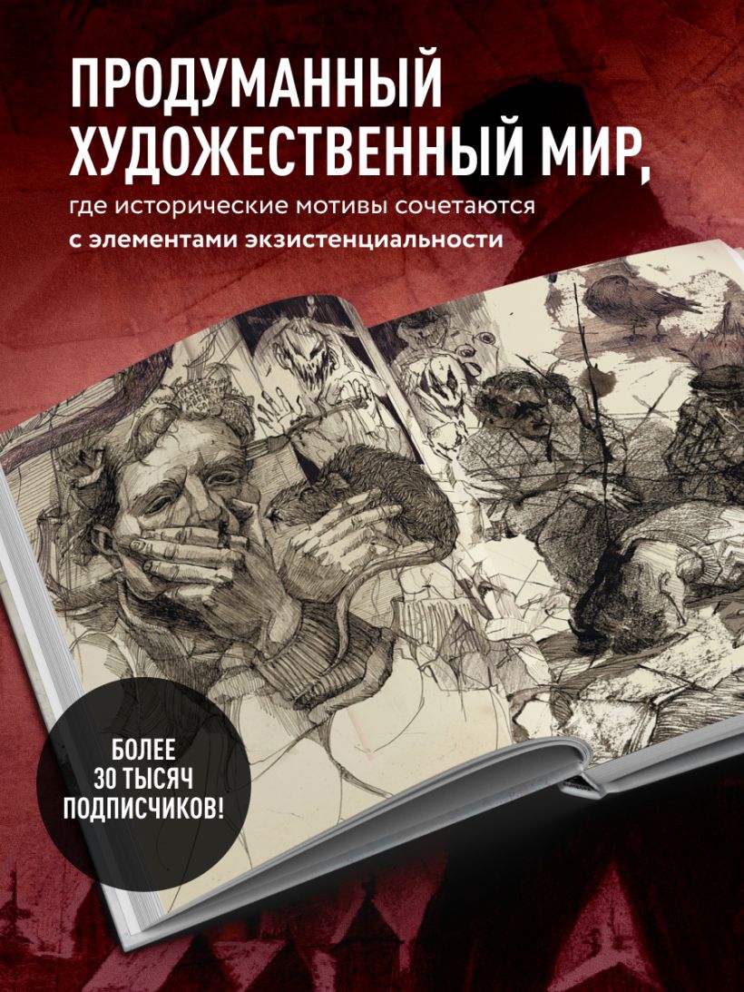 Работы, собранные в артбуке, — это вехи многолетнего пути, наполненные личным смыслом, уязвимостью и хрупкой красотой. Не только культовые и главные работы, но и значимые, дорогие сердцу художницы крохотные рисунки на клочке газет, скоротечные записи в порыве чувств и самые сокровенные мысли прямиком из недр души.