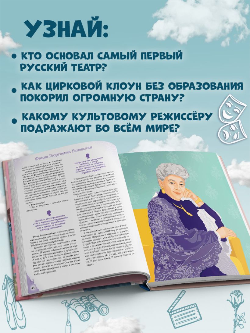 Эта книга патриотической серии «Великие люди великой страны» рассказывает о двадцати наших знаменитых соотечественниках — актёрах, режиссёрах, сценаристах, певцах, танцовщиках и других деятелях театра и кино, чьи имена навсегда останутся в истории России. Кто основал самый первый русский театр? Как цирковой клоун без профессионального образования покорил огромную страну? Какому культовому режиссёру подражают во всём мире?