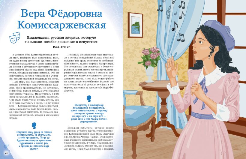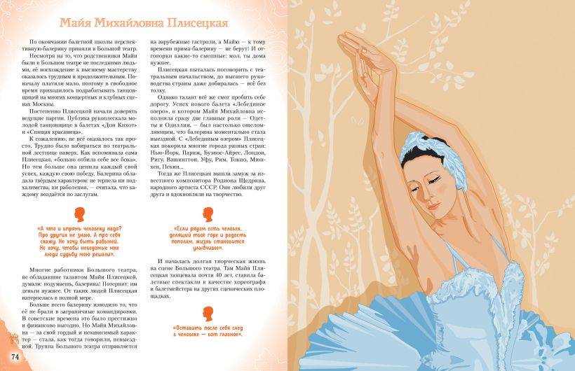 Отправляйтесь в захватывающее путешествие по разным эпохам нашей страны! Вы хотите познакомить вашего ребёнка с известными людьми России — княгиней Ольгой и Екатериной Дашковой, Галиной Вишневской и Мариной Цветаевой, Анной Павловой и Валентиной Терешковой? Узнать, во что играли будущие исторические личности? Чем увлекались в детстве? Как искали свою судьбу, искали себя на нелёгких жизненных дорогах? Ведь они так же, как и все мы, одолевали за партой неподдающиеся науки, отстаивали собственное мнение в спорах; у них были свои детские огорчения и радости. И далеко не всё получалось с первого раза... Тогда открывайте эту книгу! В каждом из 20 биографических рассказов, адаптированных для детей 7—10 лет, — невероятный образец силы воли и стойкости характера, мотивирующий девочек на собственные свершения. Их сопровождают красочные полосные иллюстрации и занимательные факты, чтобы знакомиться с выдающимися соотечественниками было наглядно и увлекательно. А ещё это неповторимый подарок для всех, кто гордится историей и культурой своего Отечества! Книги серии получили заслуженно высокую оценку — в 2024 году они были номинированы на премию Российского общества «Знание» в категории «Лучшая просветительская книга».