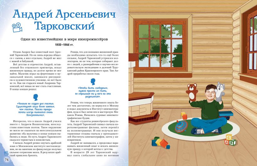 Отправляйтесь в захватывающее путешествие по разным эпохам нашей страны! Вы хотите познакомить вашего ребёнка с известными людьми России — Петром I и Суворовым, Пушкиным и Чайковским, Ломоносовым и Гагариным? Узнать, во что играли будущие исторические личности? Чем увлекались в детстве? Как искали свою судьбу, искали себя на нелёгких жизненных дорогах? Ведь они так же, как и все мы, одолевали за партой неподдающиеся науки, отстаивали собственное мнение в спорах; у них были свои детские огорчения и радости. И далеко не всё получалось с первого раза... Тогда открывайте эту книгу! В каждом из 20 биографических рассказов, адаптированных для детей 7—10 лет, — невероятный образец силы воли и стойкости характера, мотивирующий ребят на собственные свершения. Их сопровождают красочные полосные иллюстрации и занимательные факты, чтобы знакомиться с выдающимися соотечественниками было наглядно и увлекательно. А ещё это неповторимый подарок для всех, кто гордится историей и культурой своего Отечества! Книги серии получили заслуженно высокую оценку — в 2024 году они были номинированы на премию Российского общества «Знание» в категории «Лучшая просветительская книга».