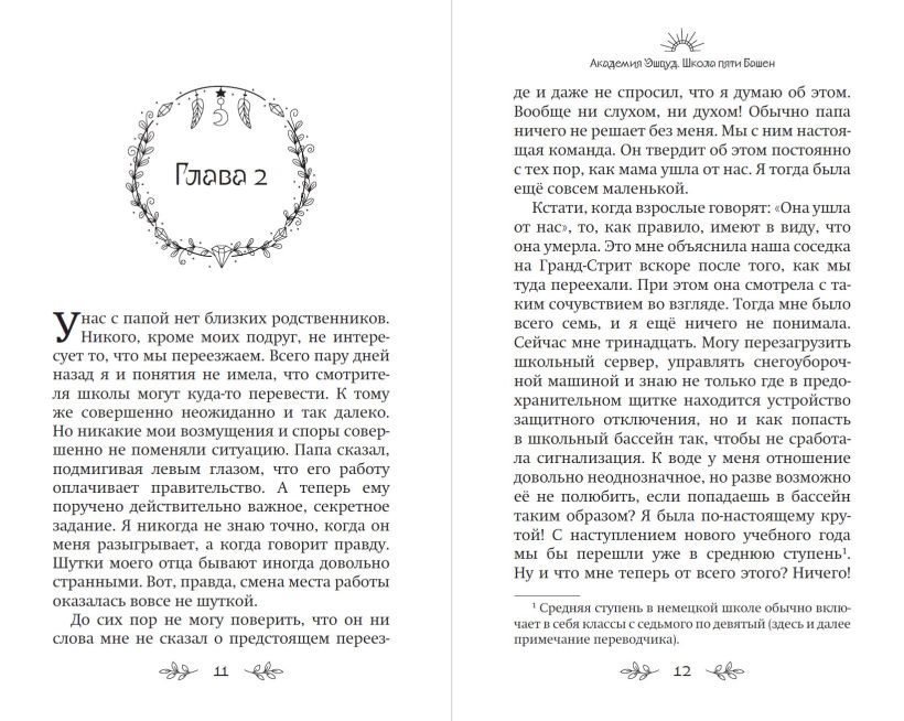 Девочка быстро понимает, что это не обычная школа: занятия проводят в огромной башне, а предметами изучения становятся эликсиры, магия растений и даже чтение мыслей! А ещё в лесах встречаются нимфы, духи и другие существа. Лене предстоит найти своё место в новом для неё магическом мире и понять: о какой угрозе все вокруг говорят?