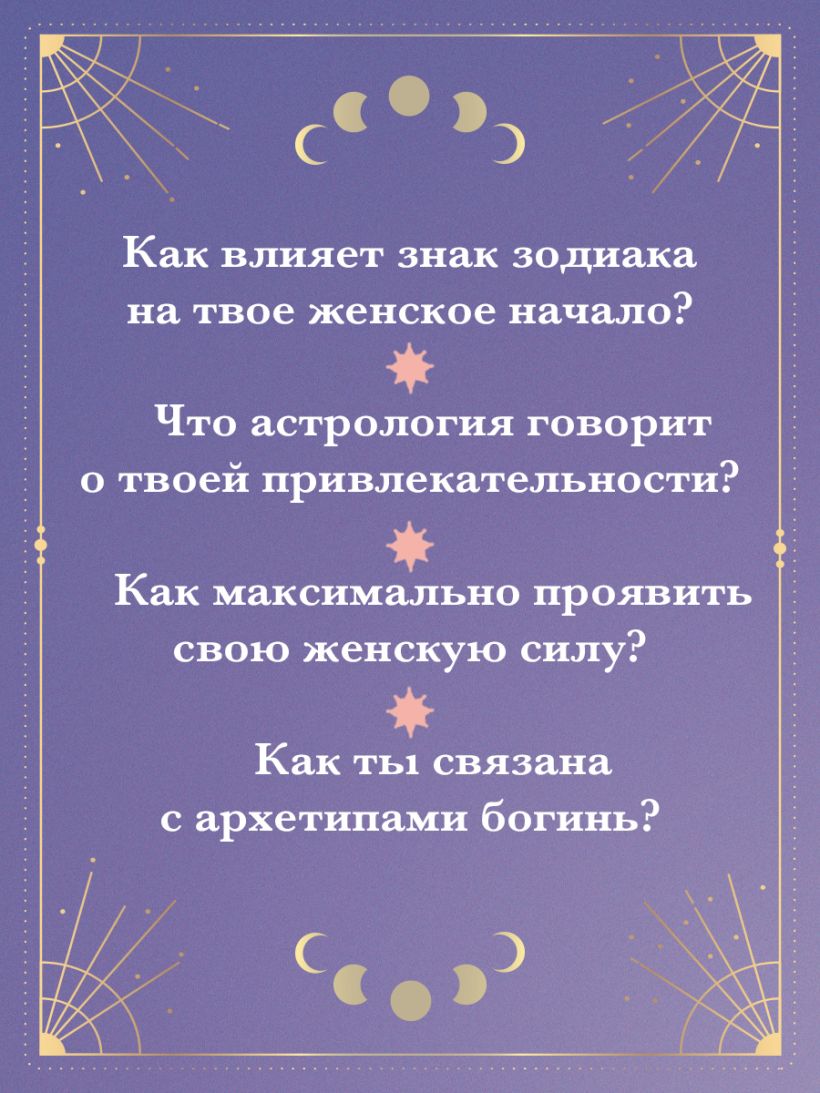 Изучение положения каждой из этих богинь в натальной карте раскрывает малоисследованную область — астрологию женского начала, рассматриваемую с точки зрения архетипов.