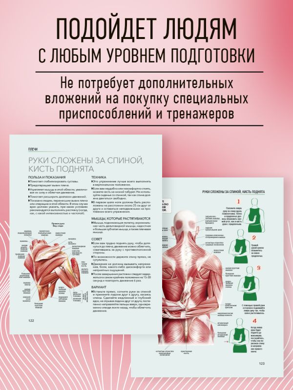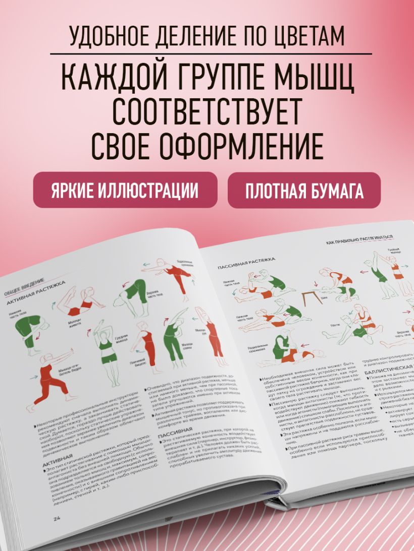 «Глубокое осознание того, что происходит с нашими мышцами во время упражнений на растяжку, не только принесет более ощутимые результаты, но и придаст уверенности, что вы все делаете правильно. В этом атласе представлено множество упражнений на все группы мышц с подробным описанием: при каких проблемах поможет, как следует правильно выполнять и какие меры предосторожности соблюдать. Издание станет незаменимым помощником для сохранения и развития гибкости при занятиях спортом, а также поддержания здоровья опорно-двигательной системы в повседневной жизни». — ЕЛЕНА КИДЯЕВА, врач-терапевт