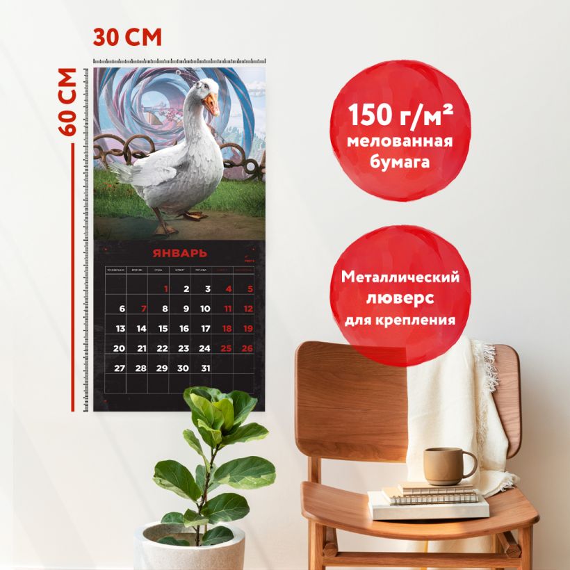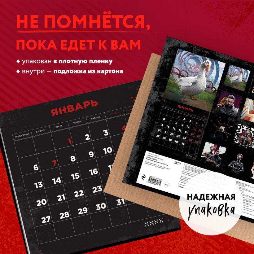 Atomic Heart занял верхние позиции в международных рейтингах, нашел свое место в сердцах игроков по всему миру и стал хитом отечественного гейм-дизайна. Официальный календарь в удобном формате 300х300 мм станет отличным подарком для фанатов эстетики игры на пересечении ретро-футуризма и жутких скульптур из российских дворов, гениальных разработок и фонк-ремиксов советских хитов.