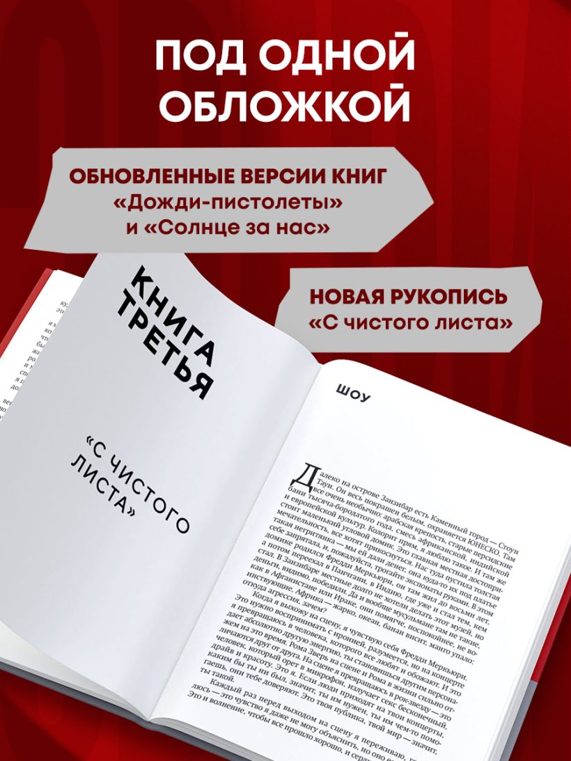 Первые две части ранее издавались как отдельные книги, но теперь переработаны и объединены под одной обложкой, а откровенный рассказ впервые дополняет фотоколлекция: от семейных архивных снимков до эксклюзивных кадров с закулисья масштабных концертов.