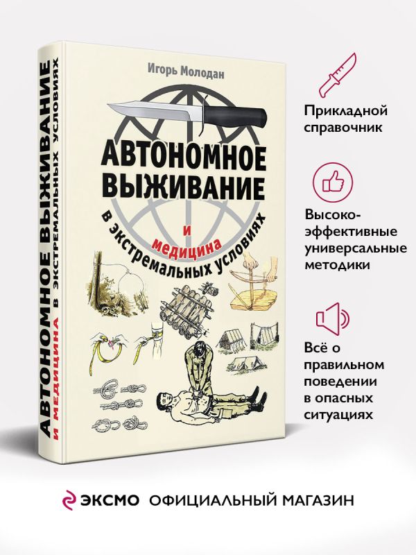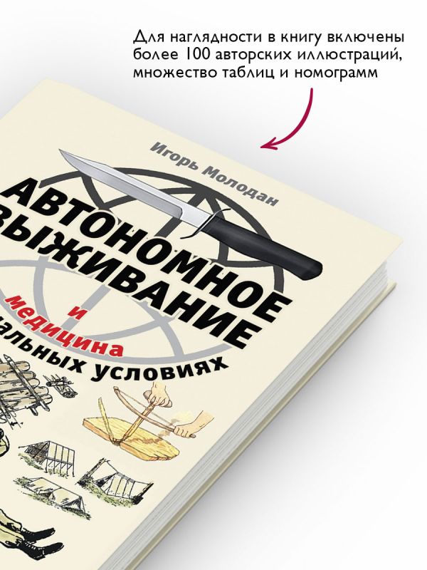 Самый полезный и компактный прикладной справочник по автономному выживанию без специального снаряжения. Всё о правильном поведении в опасных ситуациях. Каждый абзац этого наглядного пособия является рекомендацией к действию, а главы идут в приоритетном для выживания порядке. Основываясь на собственном опыте, автор предлагает высокоэффективные универсальные методики, которые позволят вам сохранить жизнь и здоровье в экстремальных условиях. Для наглядности в книгу включены более 100 авторских иллюстраций, множество таблиц и номограмм. Это издание совершенно незаменимо не только в чрезвычайных ситуациях, но и при самостоятельных путешествиях.