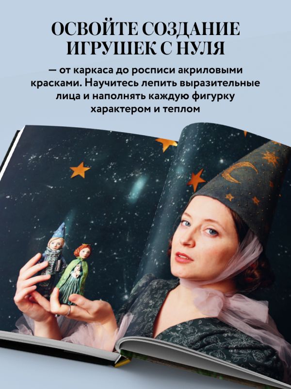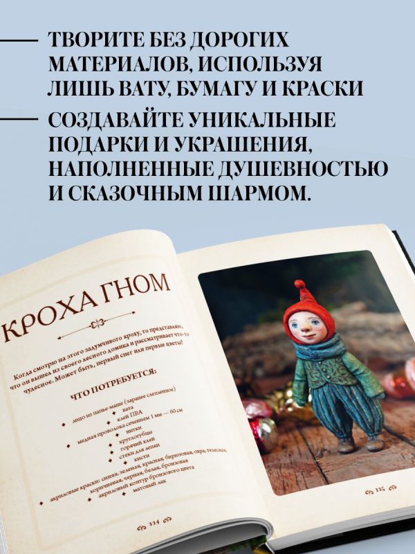 Каждая фигурка уникальна, наполнена характером и настроением. Вы научитесь создавать каркас с нуля, лепить выразительные лица без использования готовых форм, работать с ватой и папье-маше, расписывать игрушки акриловыми красками и придавать им живость, эмоции и волшебный шарм. А главное — этот процесс доступен каждому. Вам не потребуется специального оборудования или дорогих материалов — только желание творить и немного сказки в душе.