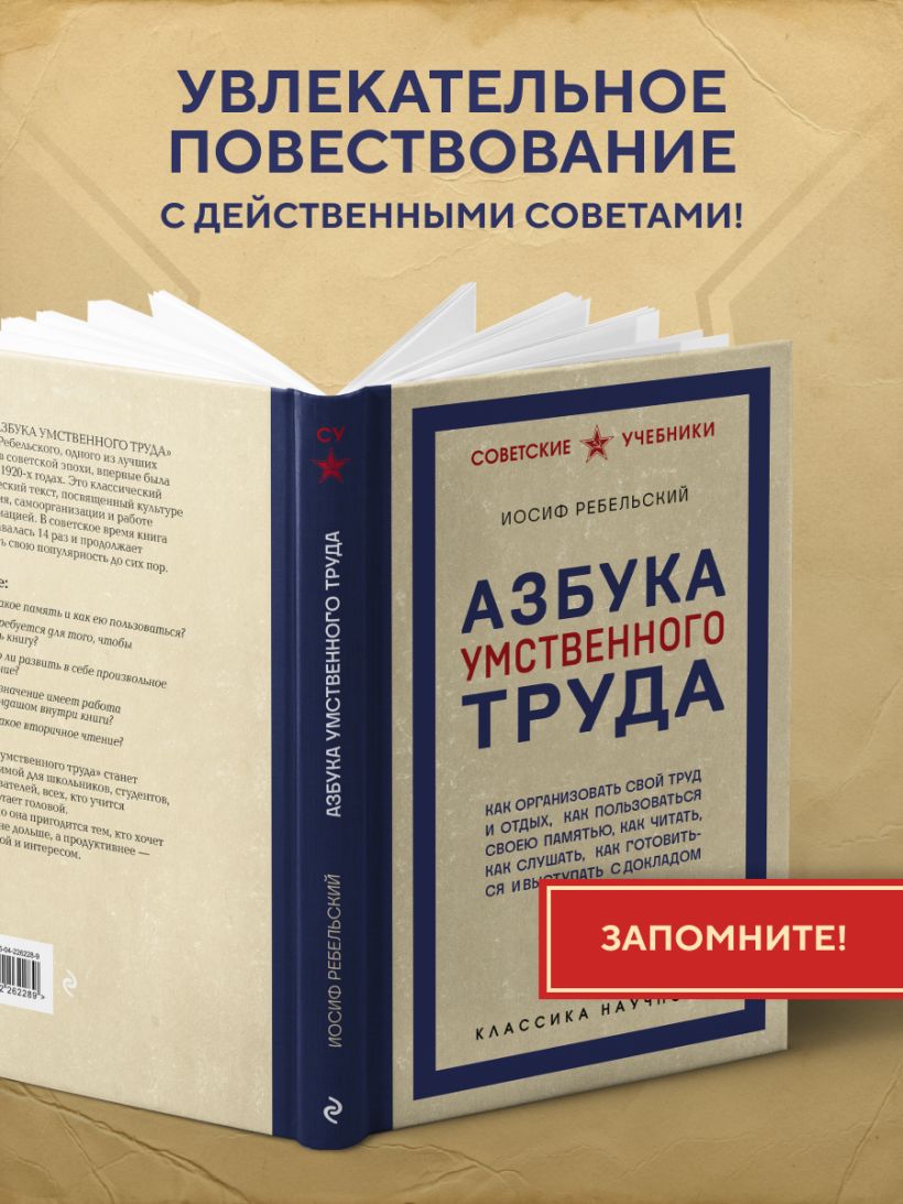 «Азбука умственного труда» — классика советского научпопа, написанная доступным языком и удивительно актуальная до сих пор. Автор книги — Иосиф Ребельский, известный педагог, популяризатор науки и логики, преподаватель, умевший объяснять сложное просто и увлекательно.