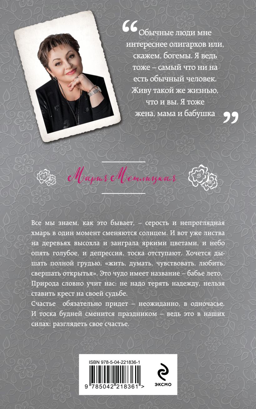 Книги Марии Метлицкой любимы миллионами. И каждый находит в них что-то свое. Но есть то, что отмечают все без исключения читатели: эти книги примиряют с жизнью и дарят надежду.