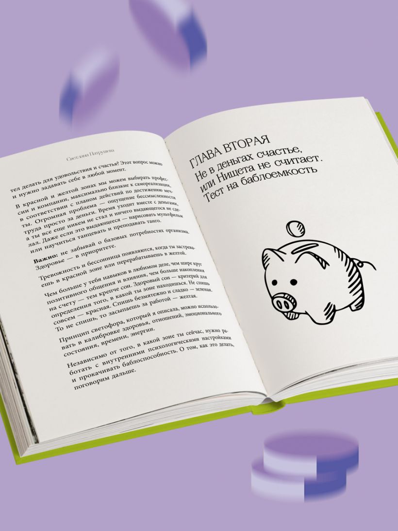 «Остроумная и очень полезная книга. Не похожа ни на одну другую по финансовому мышлению. Светлана Патрушева знает, о чем пишет. Ее собственные метаморфозы в баблоспособности происходили на моих глазах». — Татьяна Мужицкая, психолог, режиссер, актриса, автор пяти бестселлеров